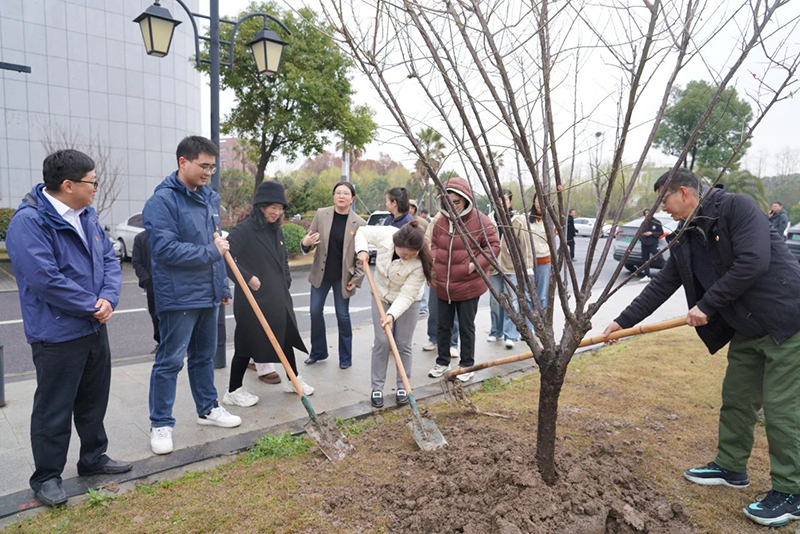 活動(dòng)現(xiàn)場(chǎng),氣氛熱烈。大家分工合作,配合默契,揮鍬鏟土、扶苗填坑、澆水灌溉,每一個(gè)環(huán)節(jié)都一絲不茍,認(rèn)真細(xì)致。經(jīng)過一番辛勤勞動(dòng),兩棵新栽種的樹苗迎風(fēng)挺立,為初春的大地增添了一抹新綠。