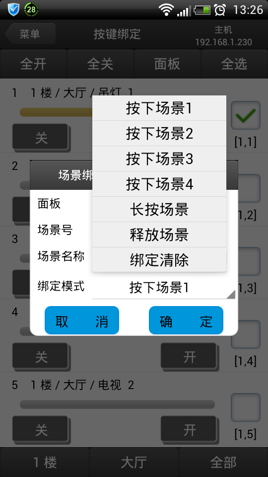 結(jié)合工程實(shí)際,VSU-GW64主機(jī)與基于VSU-NET總線的VSU-R0816A執(zhí)行模塊、面板、觸屏等組成智能照明控制系統(tǒng),通過我們提供的免費(fèi)安卓版配置軟件,可以輕松實(shí)現(xiàn)按鍵綁定、場(chǎng)景設(shè)置、定時(shí)等配置及控制。