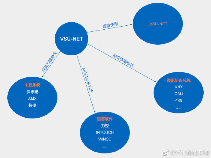 VSU智能照明控制系統(tǒng)通過自主研發(fā)的VSU-NET通訊協(xié)議可以做到單獨自組解決方案,同時也可以與市場上不同通訊協(xié)議的系統(tǒng)搭配,實現(xiàn)靈活多樣的行業(yè)智能化控制解決方案。 VSU的VSU-NET總線產(chǎn)品,大都采用雙總線口的設計,搭配連接片使用,極大降低施工人員接線的工作量,產(chǎn)品設計合理專業(yè)、系統(tǒng)、更加人性化;系統(tǒng)配置免編程,手機即可完成簡單的系統(tǒng)編程,不需要電腦,人機互動,真正實現(xiàn)智能化控制!