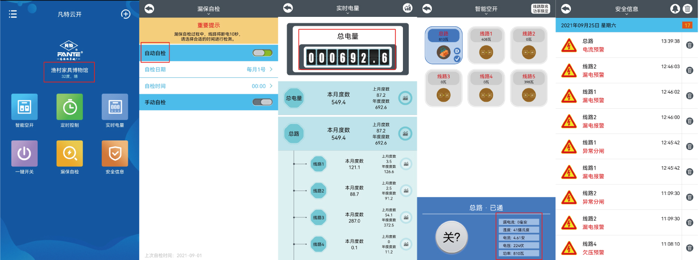 通過智慧用電安全監(jiān)管與電能管理系統(tǒng),管理人員可以通過高科技手段提升館內(nèi)電氣安全。當(dāng)電路中電流產(chǎn)生過壓或欠壓狀態(tài)自動開始斷電,除能完成接觸和分?jǐn)嚯娐吠?,尚能對電路或電氣設(shè)備發(fā)生的短路、過載及漏電等進(jìn)行保護(hù),最大限度預(yù)防電氣火災(zāi)和人員觸電傷亡事故。全局掌握館內(nèi)正常用電與違規(guī)電器使用數(shù)據(jù),并利用電氣故障情況統(tǒng)計匯總分析,實現(xiàn)遠(yuǎn)程控制、實時報警、統(tǒng)計運(yùn)算、節(jié)能管理與大數(shù)據(jù)分析。