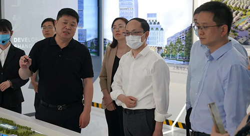 吳能武一行人首先參觀了上海灣區(qū)科創(chuàng)中心展廳,灣區(qū)科創(chuàng)公司負(fù)責(zé)人就科創(chuàng)中心的總體規(guī)劃、未來城市設(shè)計以及院校合作等板塊進行了詳細(xì)介紹。