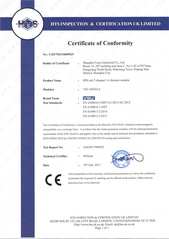 VSU智能照明有多項自主知識產(chǎn)品證書,所有產(chǎn)品都經(jīng)過國際CE認(rèn)證,符合國際電工標(biāo)準(zhǔn)。
